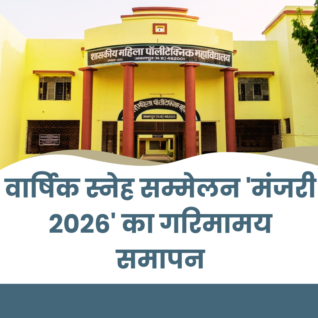 शासकीय महिला पॉलिटेक्निक महाविद्यालय, जबलपुर में वार्षिक स्नेह सम्मेलन ‘मंजरी: नव पल्लव, नई उमंग’ का गरिमामय समापन हुआ। यह वार्षिक उत्सव न केवल मनोरंजन का माध्यम बना, बल्कि छात्राओं के कौशल विकास, उच्च शिक्षा के प्रति उनके उत्साह और उन्हें Read More …
